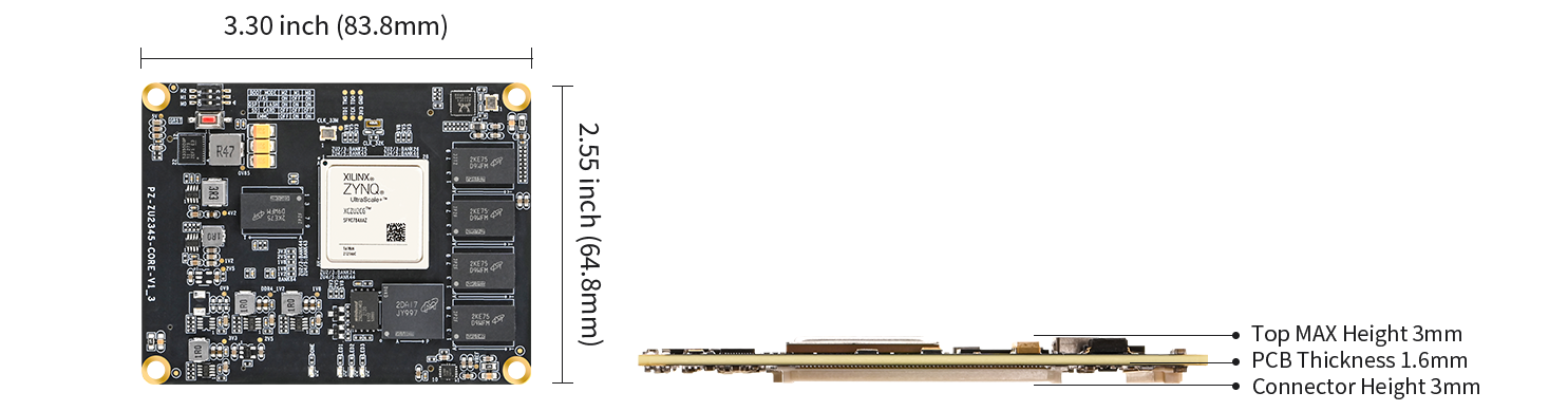 - ZYNQ UltraScale+ core board,2 x Cortex-A53,main frequency 1.2Ghz